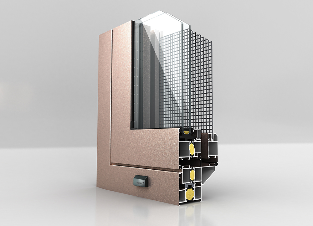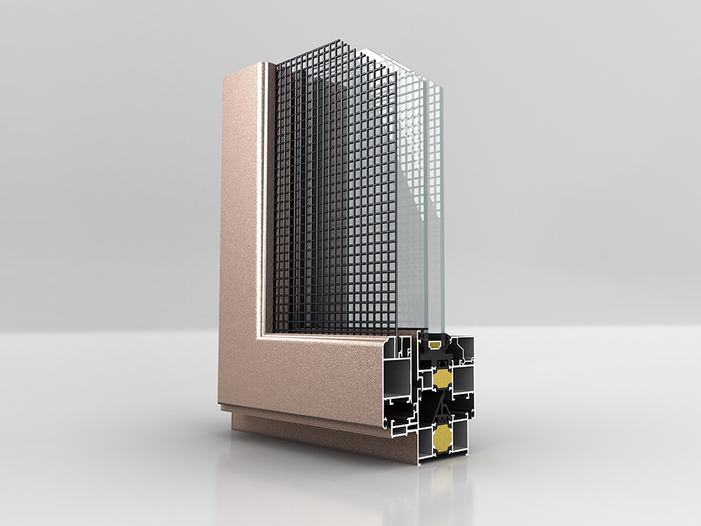 ■ 機(jī)械復(fù)合三腔結(jié)構(gòu);采用34mm寬PA66隔熱條 ■ 隔熱條腔內(nèi)采用高壓注高分子保溫材料;連續(xù)等溫面設(shè)置 ■ 型材壁厚2.0mm ■ 外框深度75mm;可做內(nèi)外雙色噴涂 ■ 玻璃標(biāo)配39mm,最寬可做47mm ■ 可標(biāo)配40厚鋁蜂窩板;外置線條 ■ 下檻可配標(biāo)準(zhǔn)門檻、低
